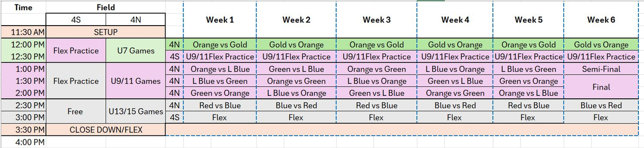 U7 - Prior to each U7 game there will be a period of instruction followed by the game.